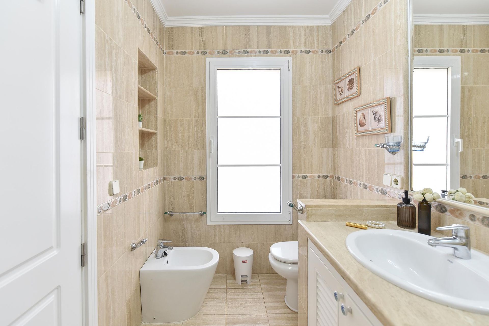 1 Badezimmer mit Dusche im Obergeschoss und 1 Gäste-WC im Erdgeschoss