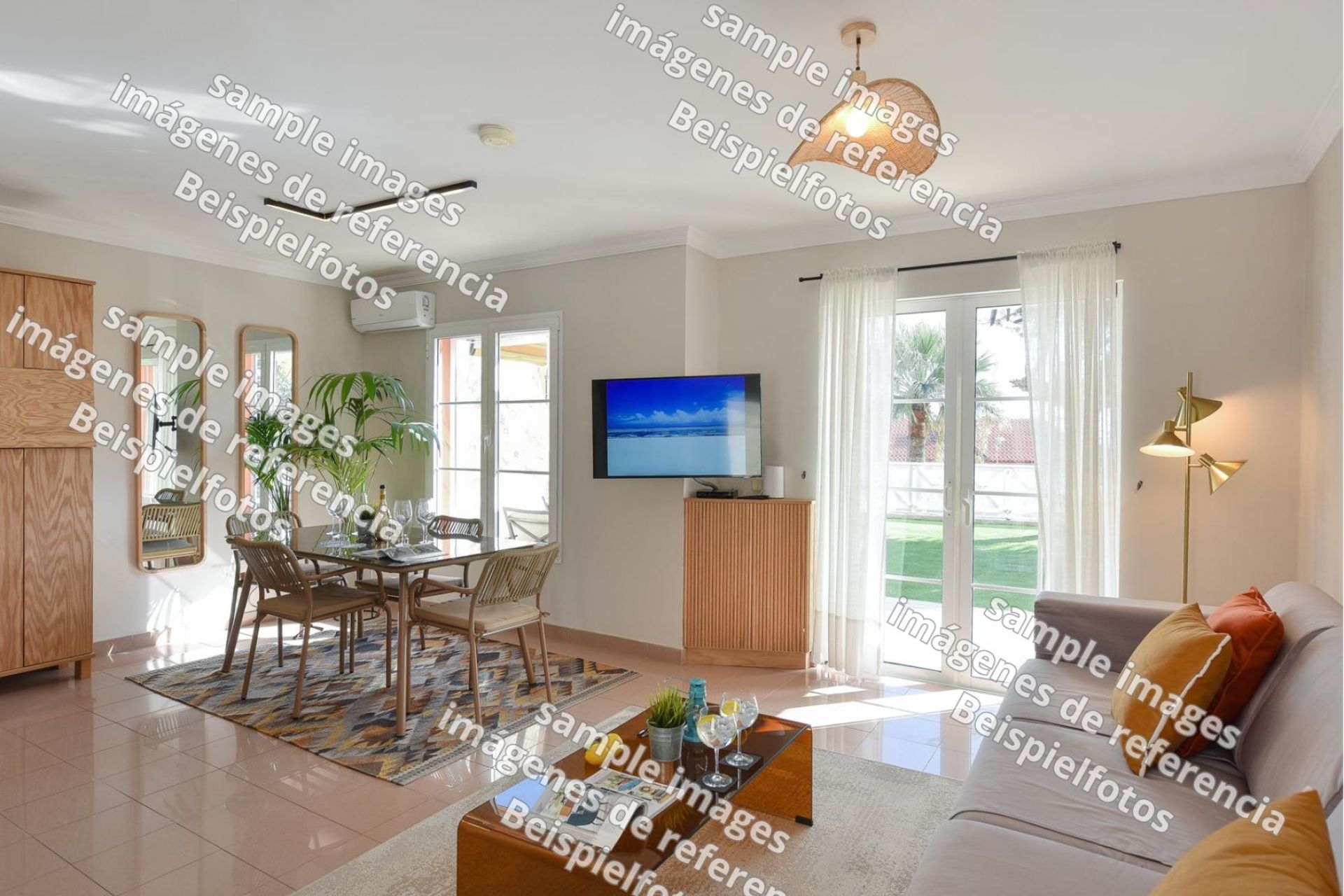 Helles Wohnzimmer mit Smart-TV und Klimaanlage