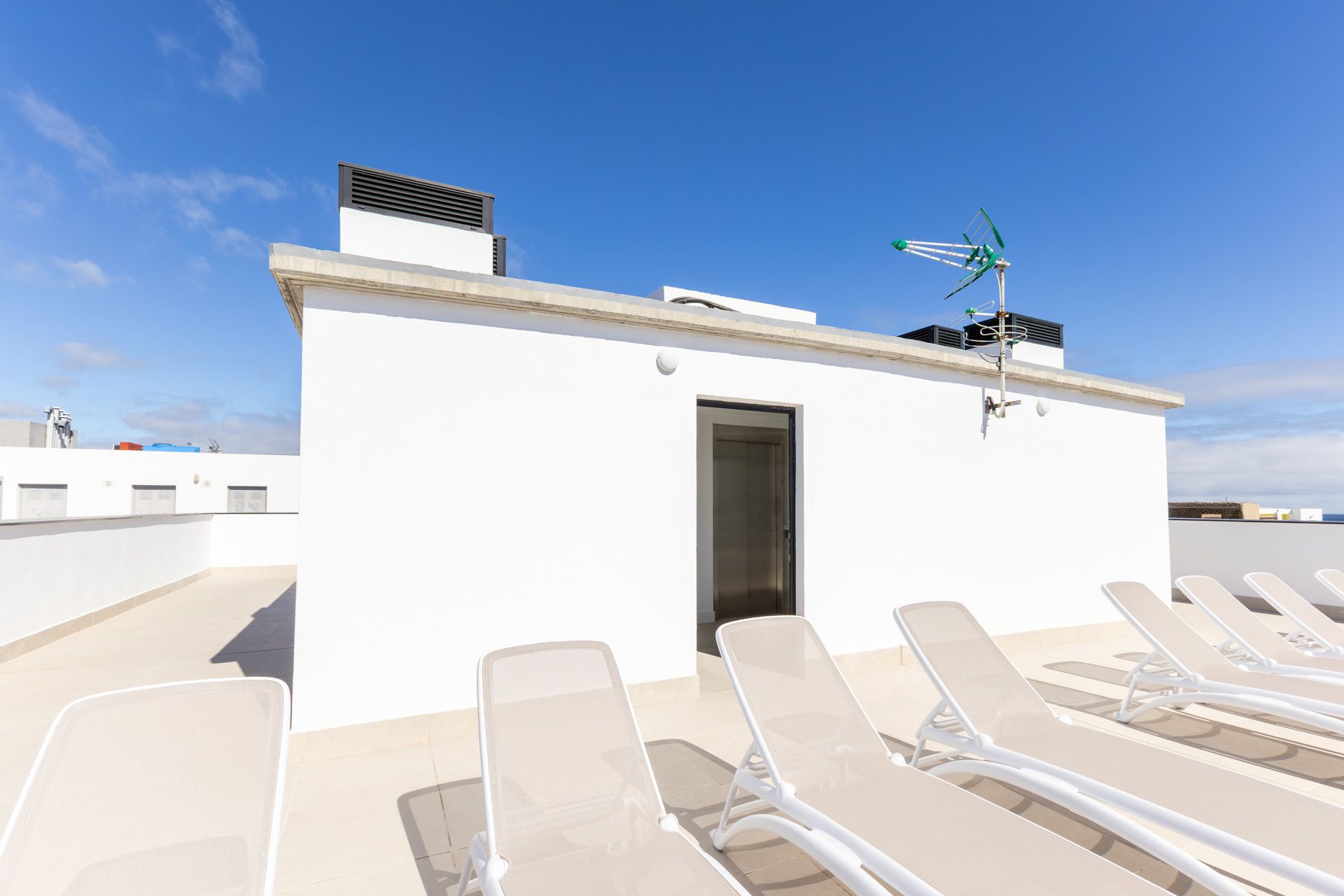 Das Apartment bietet Platz für bis zu 4 Gäste und verfügt über zwei Schlafzimmer (ein Doppelbett und zwei Einzelbetten), zwei Badezimmer mit Dusche, einen komfortablen Wohn- und Essbereich sowie eine einfach ausgestattete Küche. Zusätzlich steht Ihnen ein privater Waschraum auf der Dachterrasse mit eigener Waschmaschine zur Verfügung.