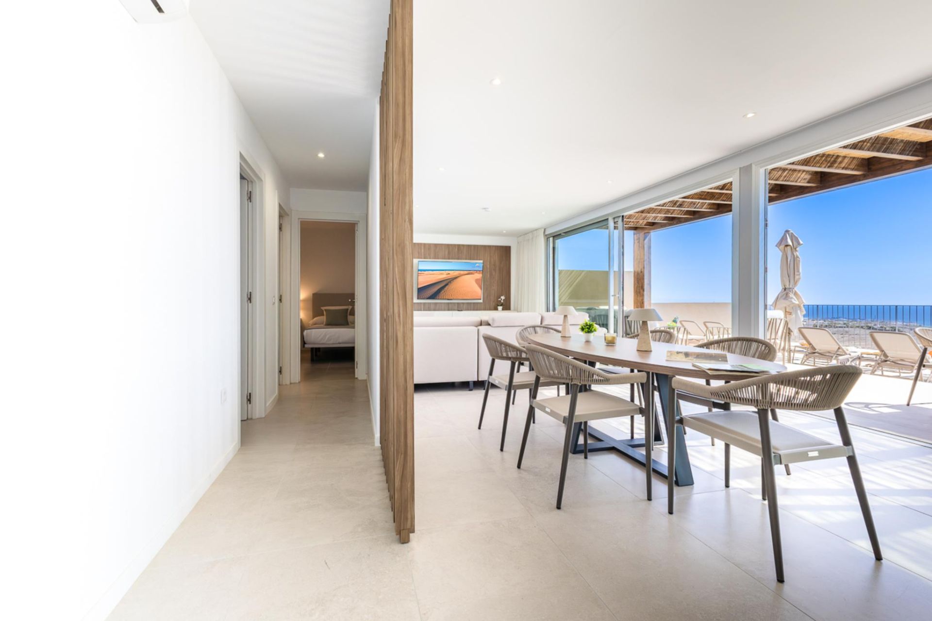 - 40 m² große Veranda mit Pergola und ausziehbarem Esstisch.