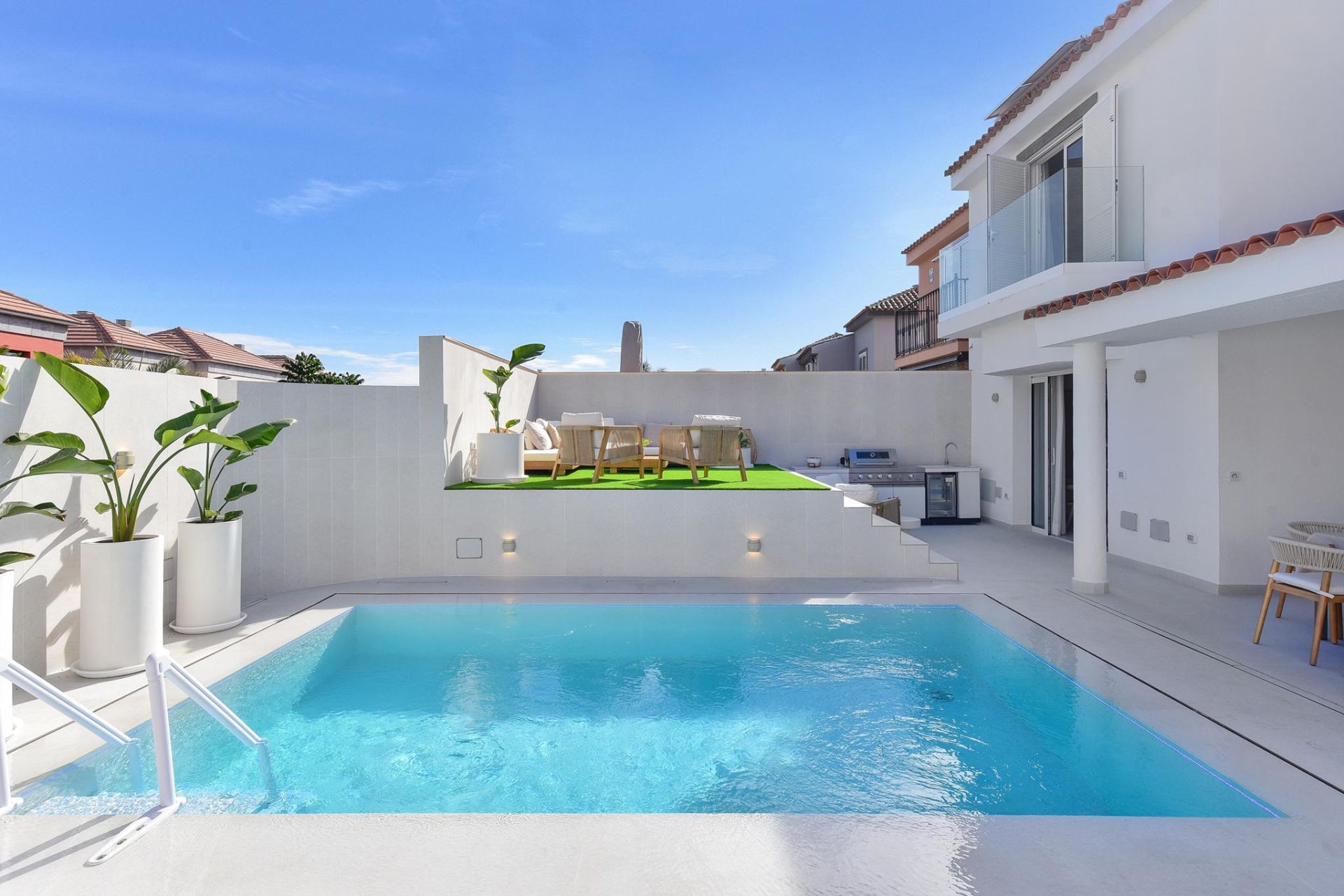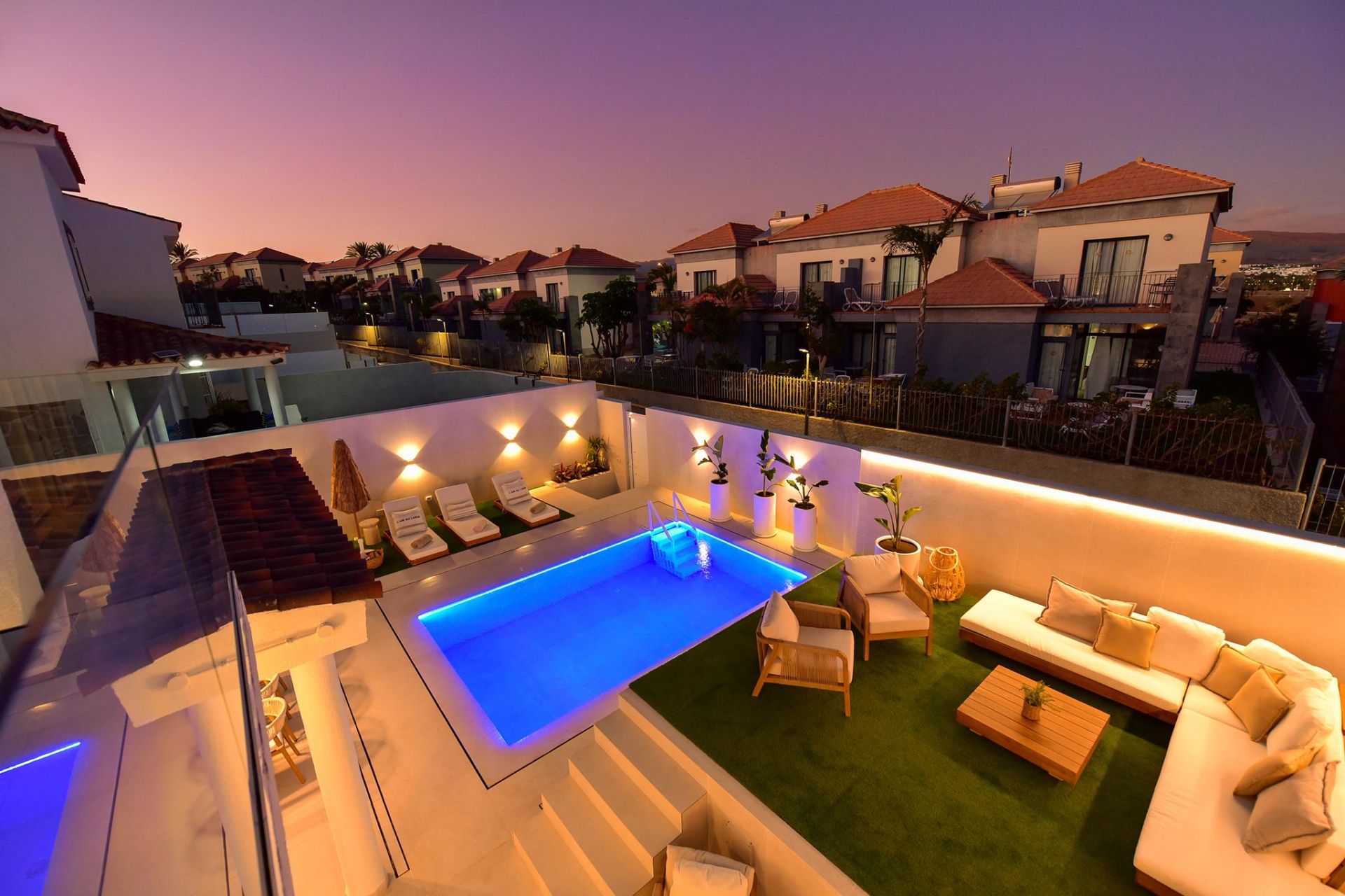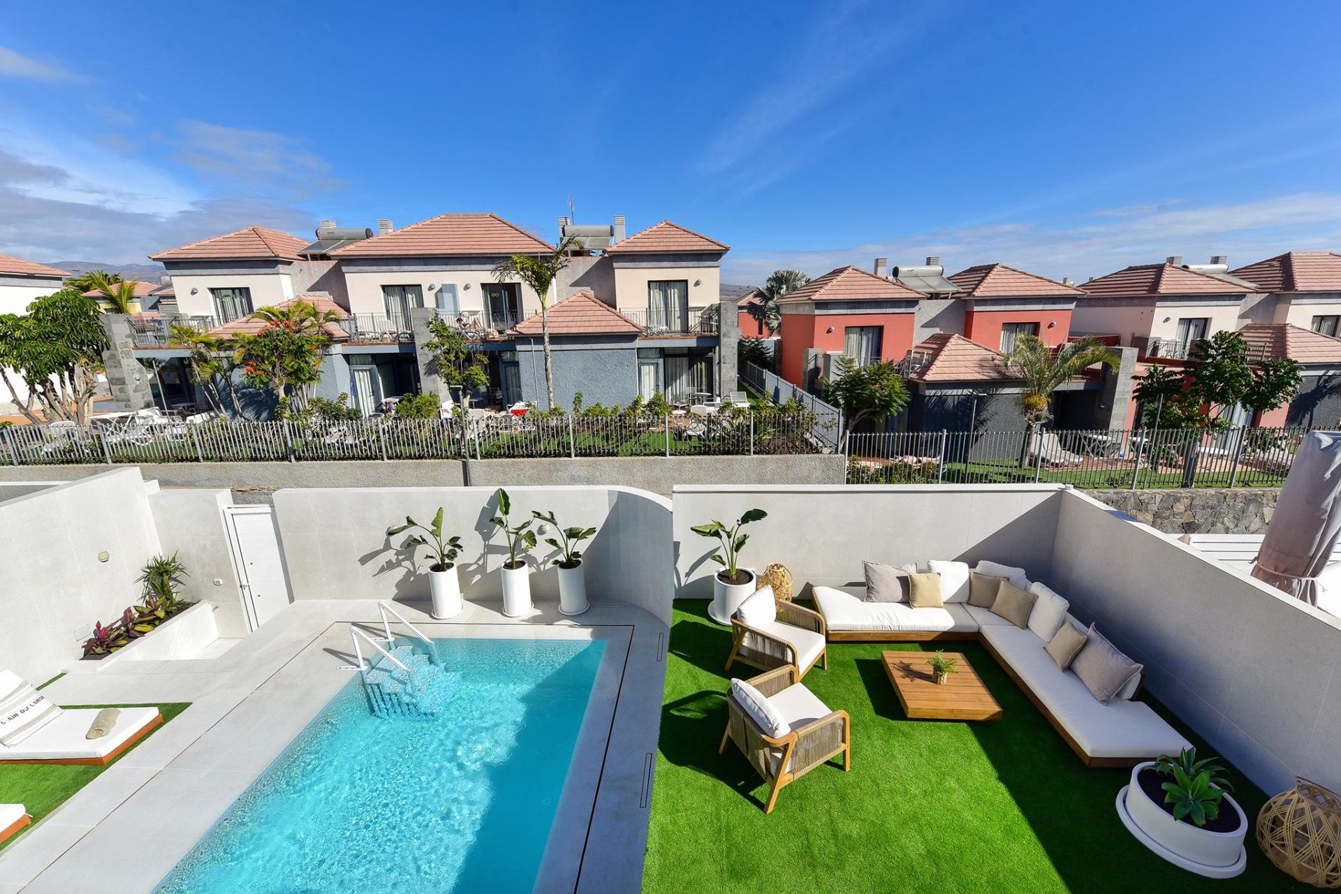 Wenn Sie gerne Luxus an einem ruhigen Ort genießen möchten, ohne von der Außenwelt isoliert zu sein, ist dies das ideale Ferienhaus. Meloneras Hills 16 verfügt über eine voll ausgestattete Küche mit Geschirrspüler, Waschmaschine, Backofen, Nespresso-Kaffeemaschine... usw. Alles, was Sie brauchen, um Ihren Aufenthalt so angenehm wie möglich zu gestalten. Das geräumige und helle Wohnzimmer bietet Satellitenfernsehen und Klimaanlage, außerdem gibt es in allen Schlafzimmern eine Klimaanlage.