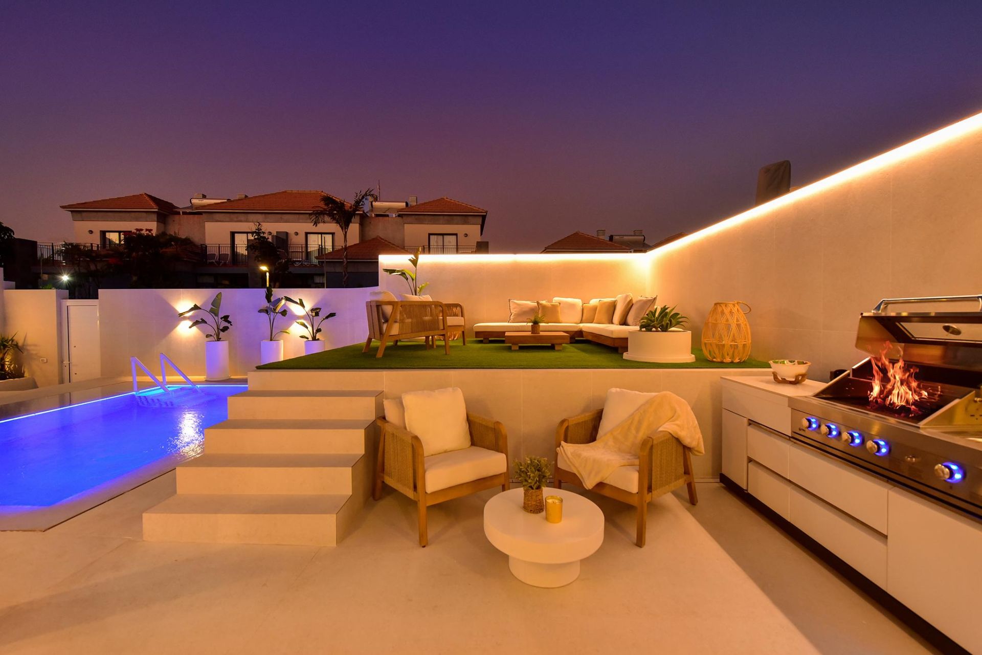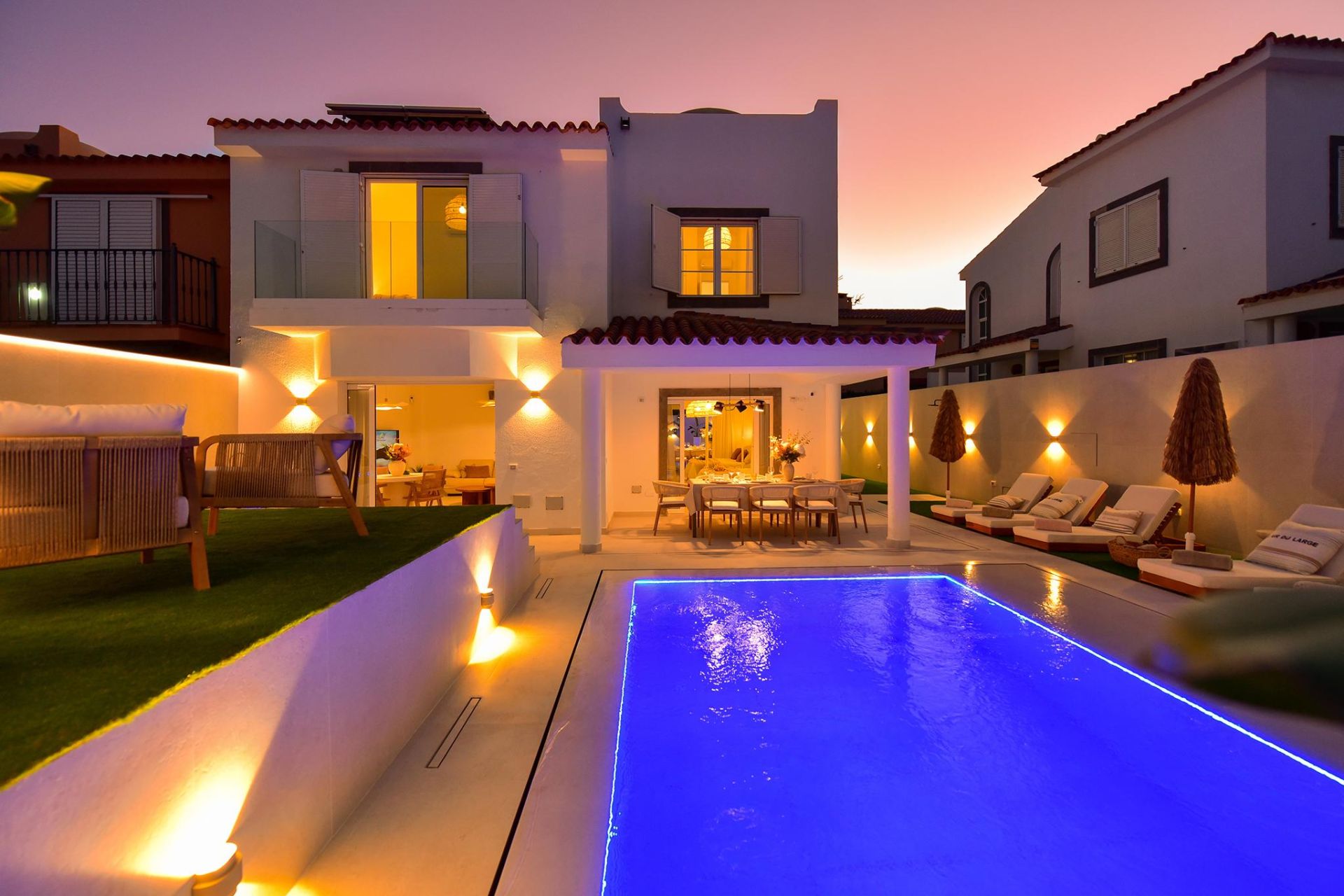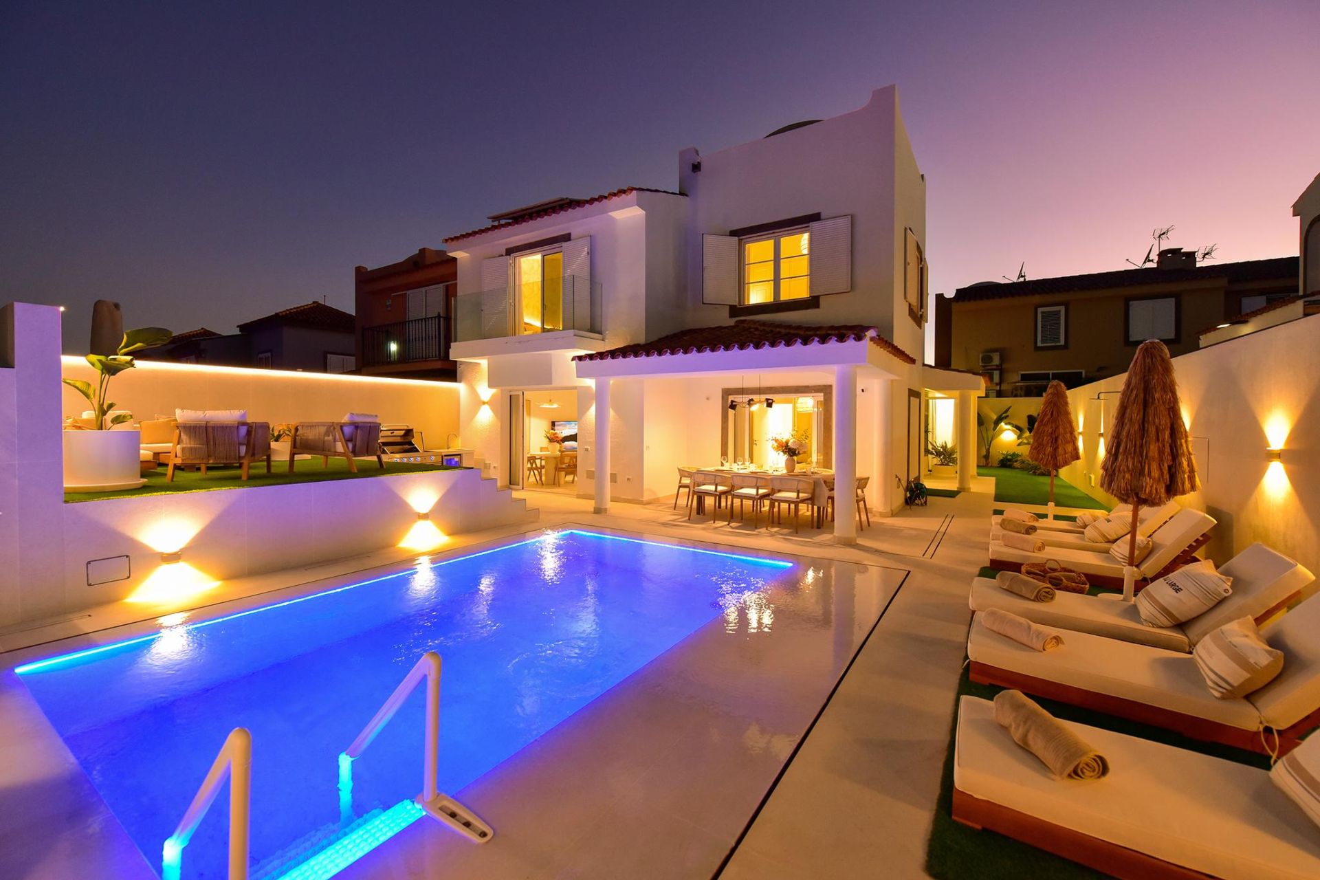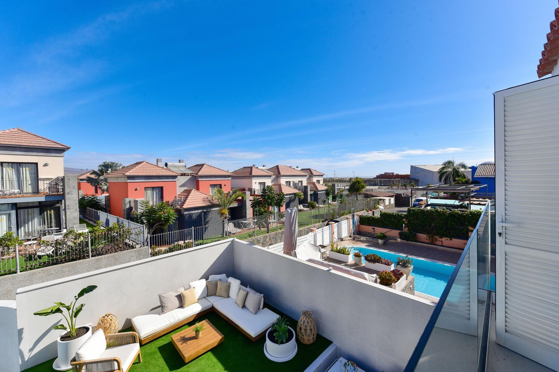 Wenn Sie gerne Luxus an einem ruhigen Ort genießen möchten, ohne von der Außenwelt isoliert zu sein, ist dies das ideale Ferienhaus. Meloneras Hills 16 verfügt über eine voll ausgestattete Küche mit Geschirrspüler, Waschmaschine, Backofen, Nespresso-Kaffeemaschine... usw. Alles, was Sie brauchen, um Ihren Aufenthalt so angenehm wie möglich zu gestalten. Das geräumige und helle Wohnzimmer bietet Satellitenfernsehen und Klimaanlage, außerdem gibt es in allen Schlafzimmern eine Klimaanlage.