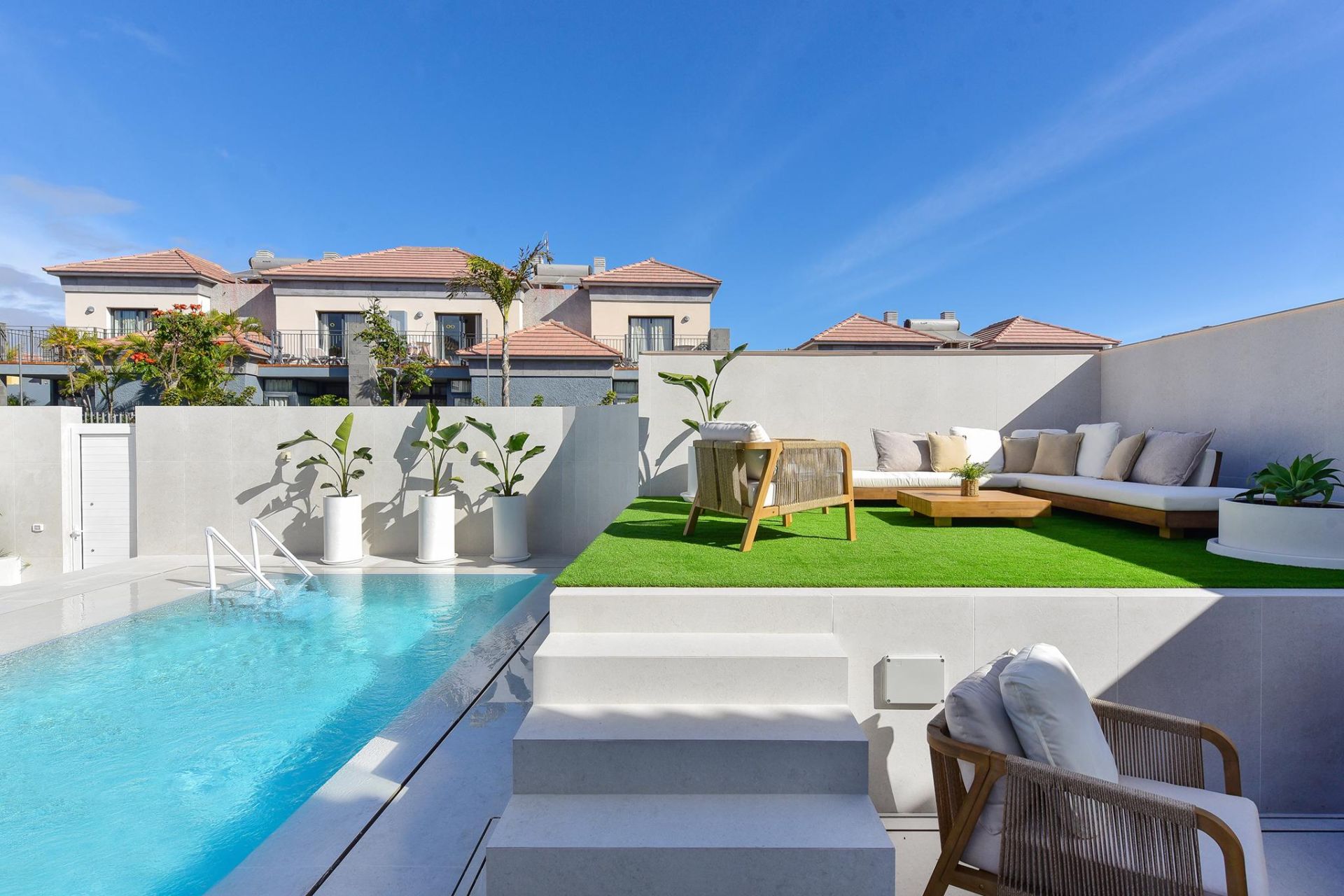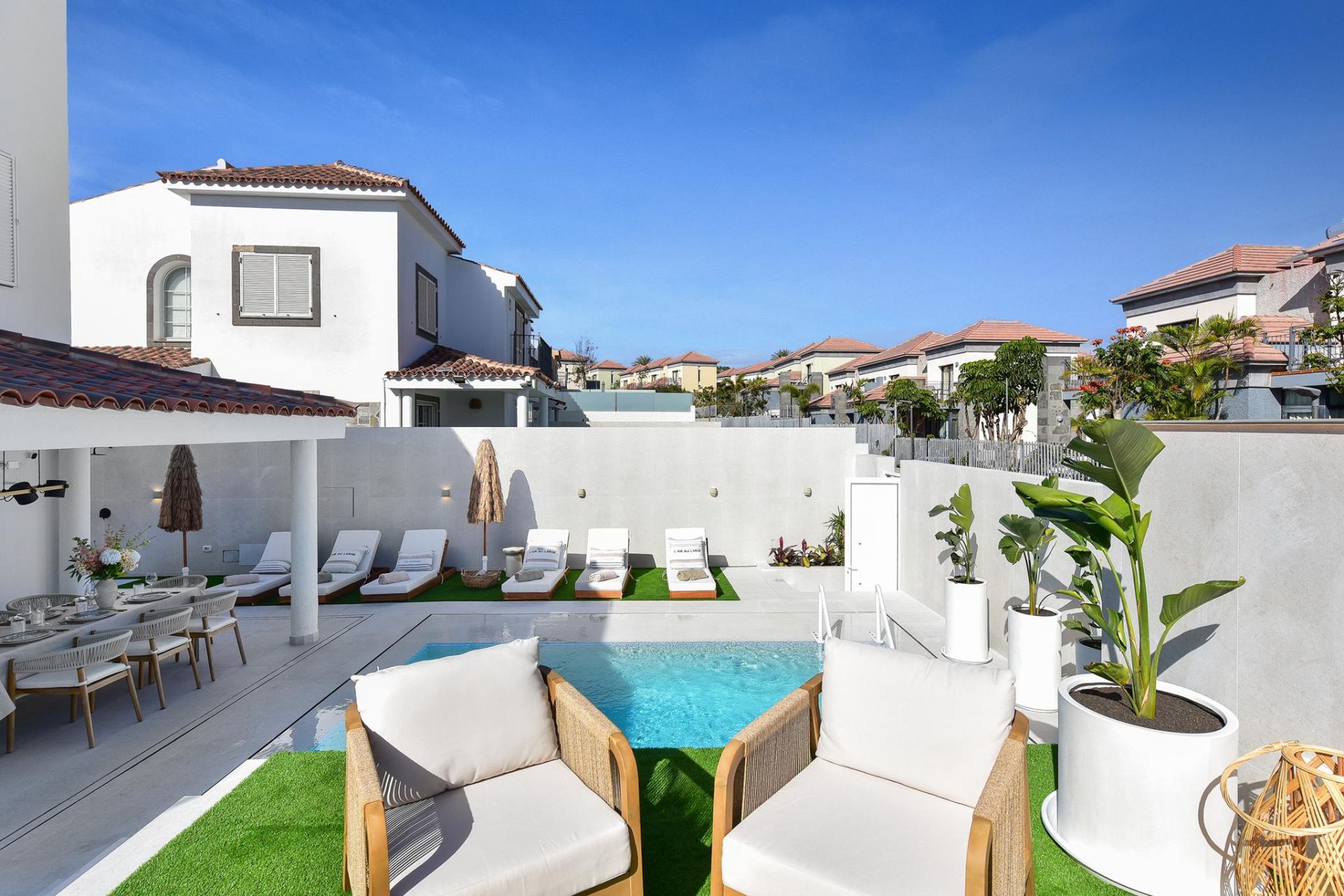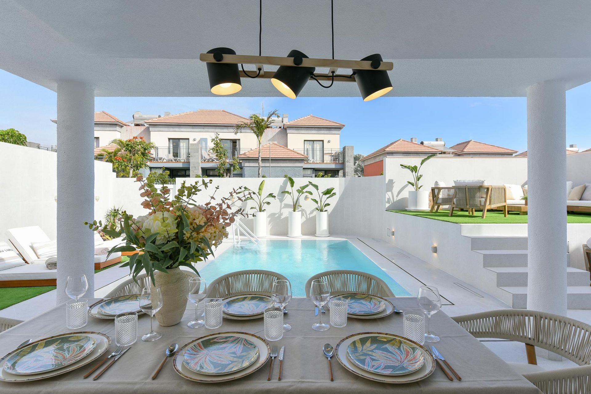 Meloneras Hills 16 ist eine Villa mit 4 Schlafzimmern für bis zu 8 Gäste, die kürzlich renoviert wurde und exklusiv mit einem privaten Pool ausgestattet ist. Sie liegt in der eleganten Gegend von Meloneras im Süden von Gran Canaria.