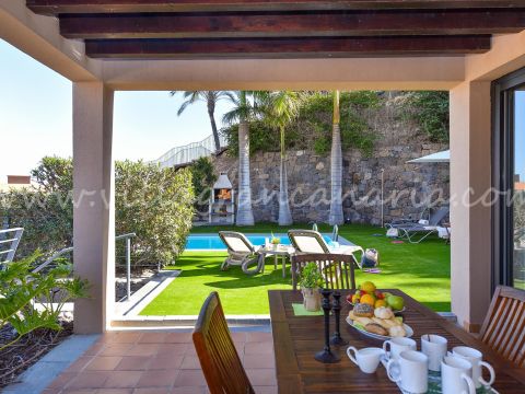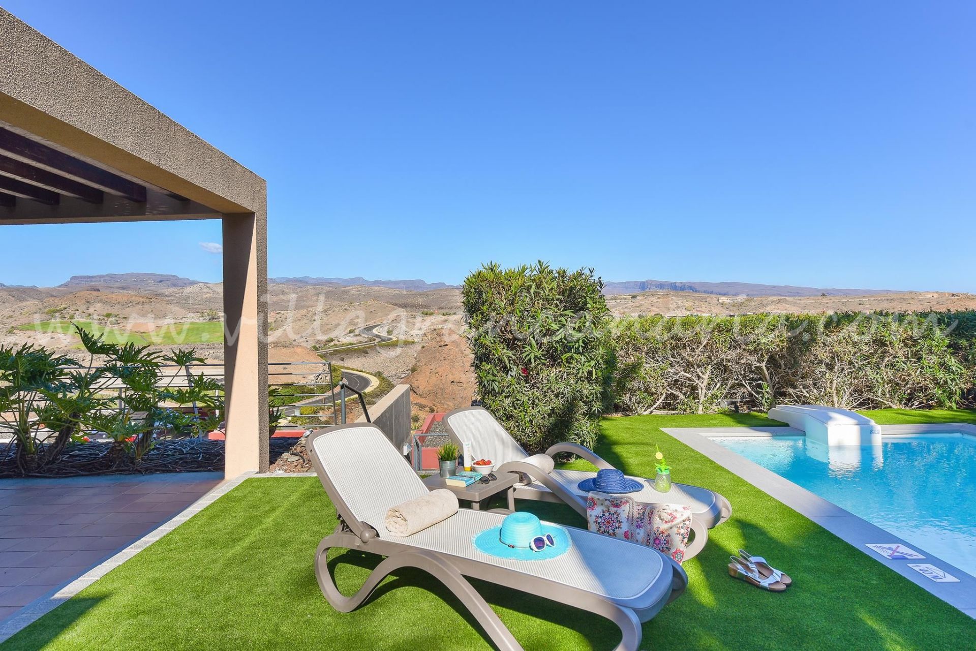 In dieser Villa genießen Sie eine ruhige Umgebung mit herrlichem Blick auf die Berge des Südens von Gran Canaria und den Golfplatz.