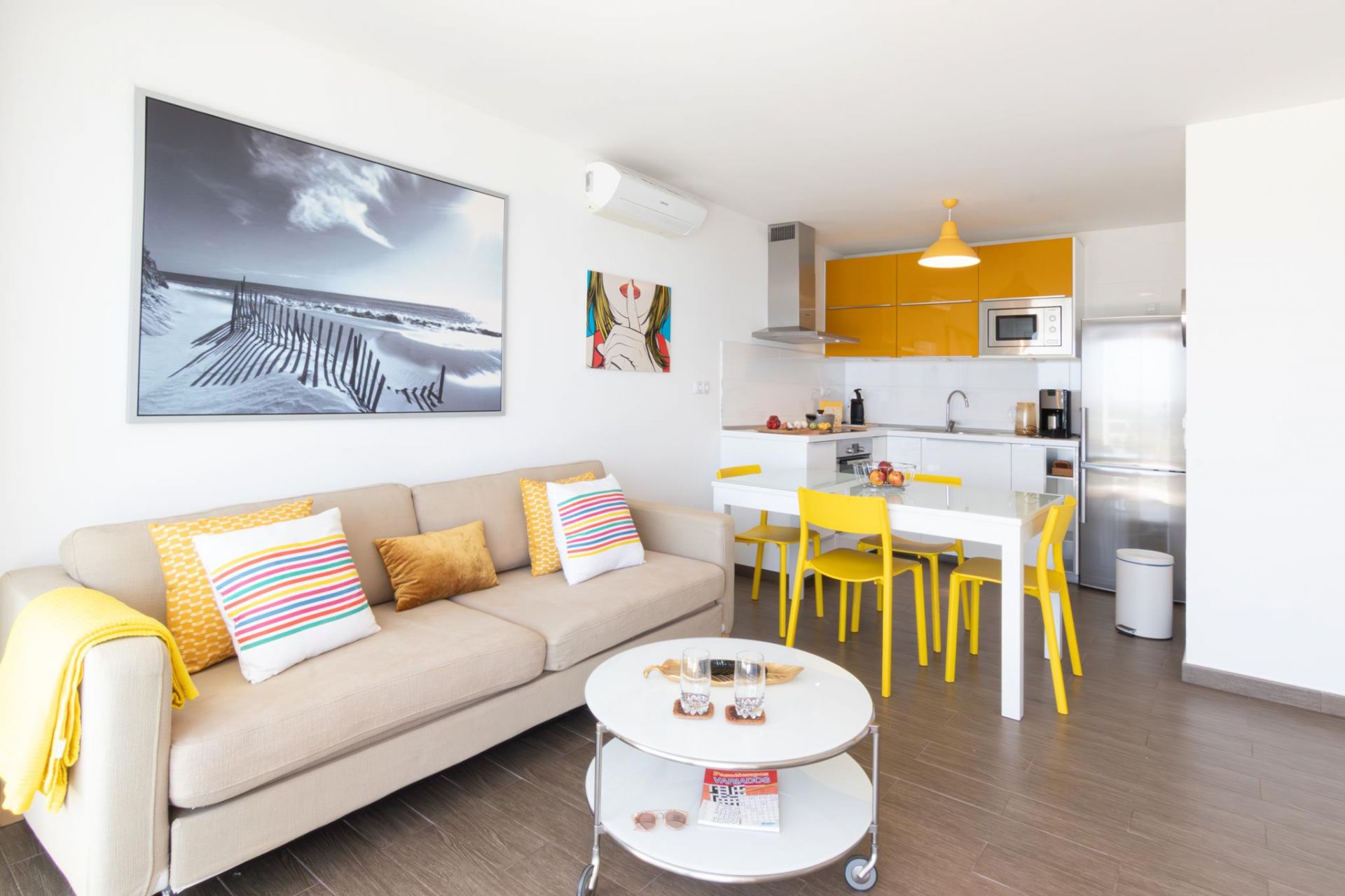 El apartamento cuenta con una cocina totalmente equipada que se conecta a la perfección con una amplia sala de estar. Encontrarán comodidades modernas como nevera, horno, microondas y todos los utensilios de cocina necesarios. El salón incluye un espacio de comedor, Smart TV e Internet de alta velocidad gratuito.