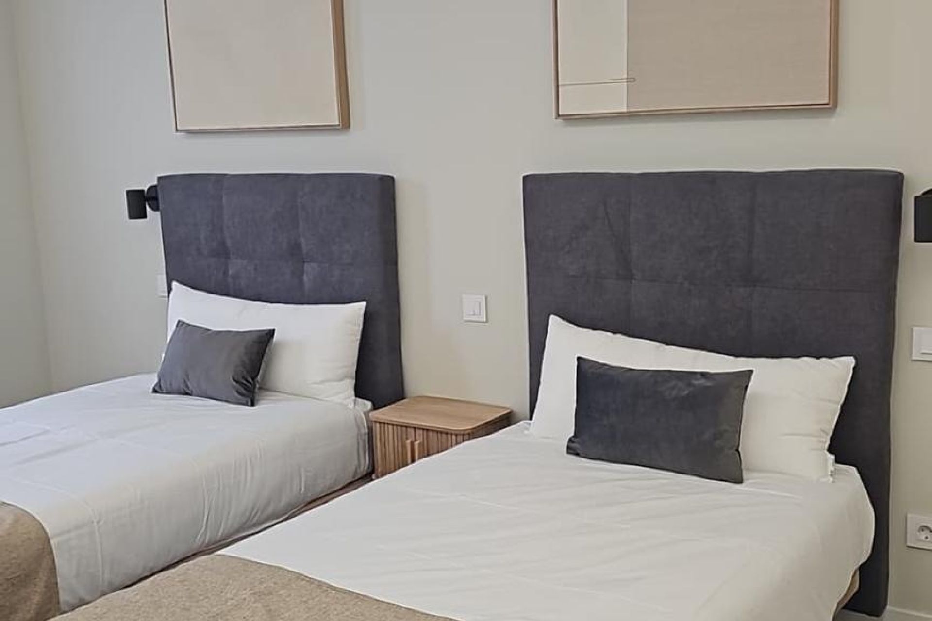 - Dos dormitorios: una cama doble + dos camas individuales.