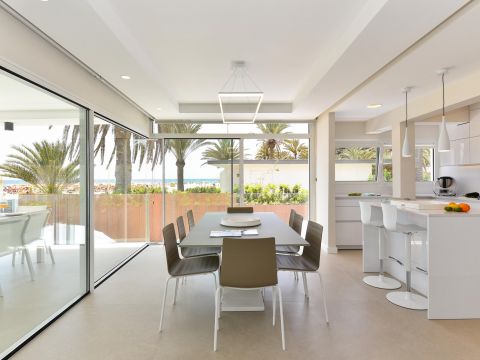 Este alojamiento vacacional se encuentra a pie de playa, es de nueva construcción y está decorada con un estilo moderno y elegante, distribuida en 560m2 y ofreciendo hermosas vistas al mar.