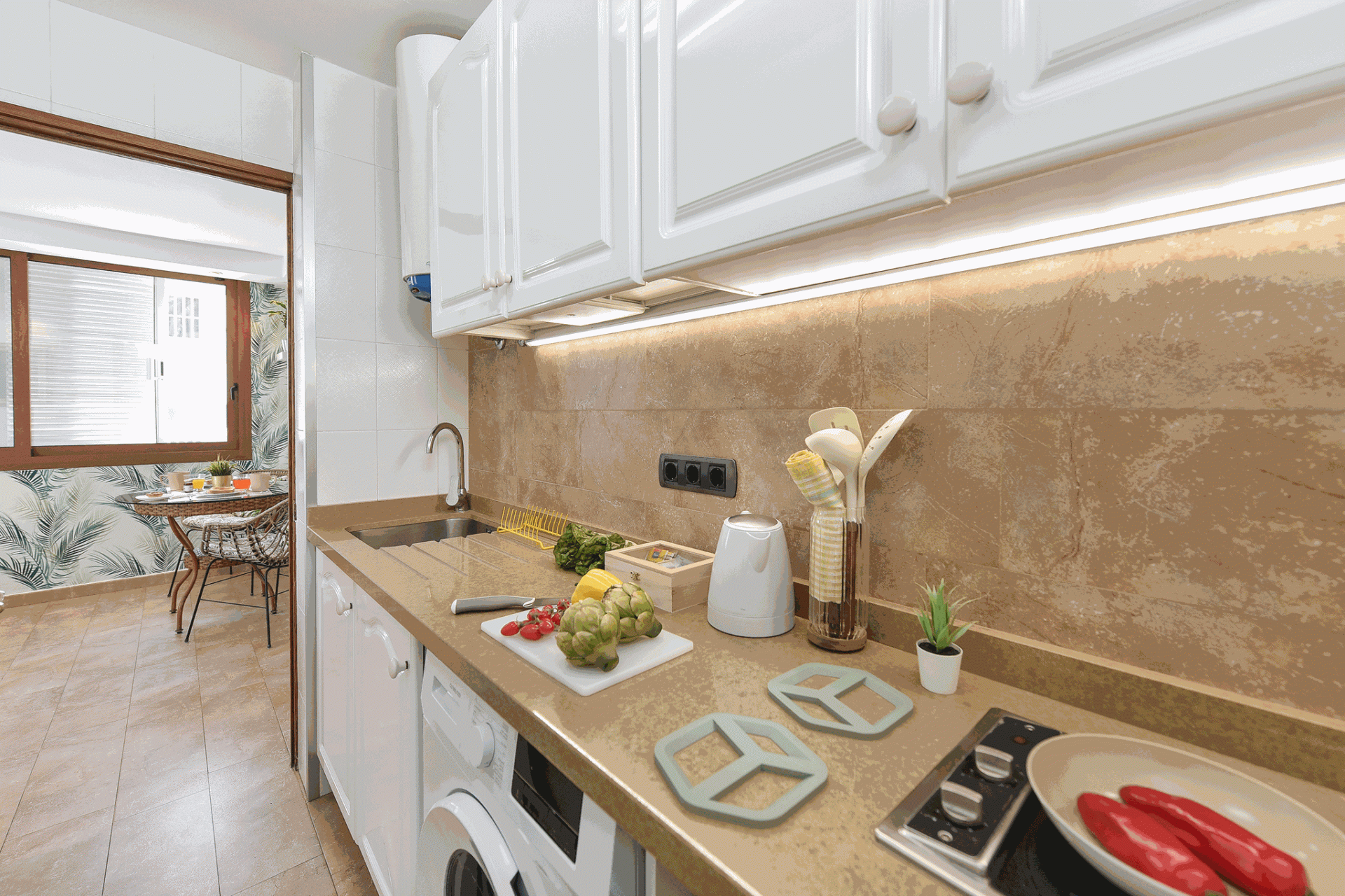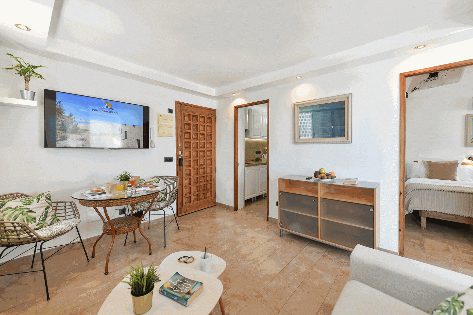 Perfecto para parejas o viajeros individuales, este apartamento tiene capacidad para 2 personas y dispone de un dormitorio con dos camas individuales, una acogedora sala de estar con Smart TV y una cocina totalmente equipada. También cuenta con aire acondicionado y comodidades adicionales como lavadora, lo que lo convierte en una excelente opción para estancias más largas.