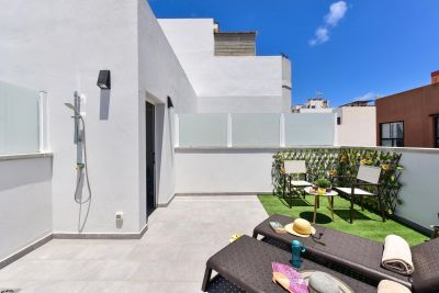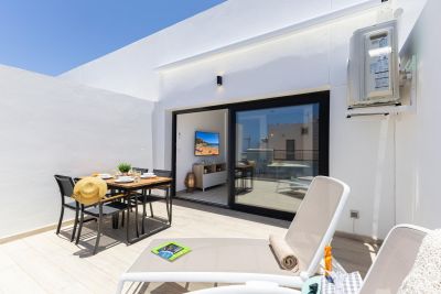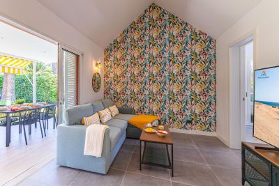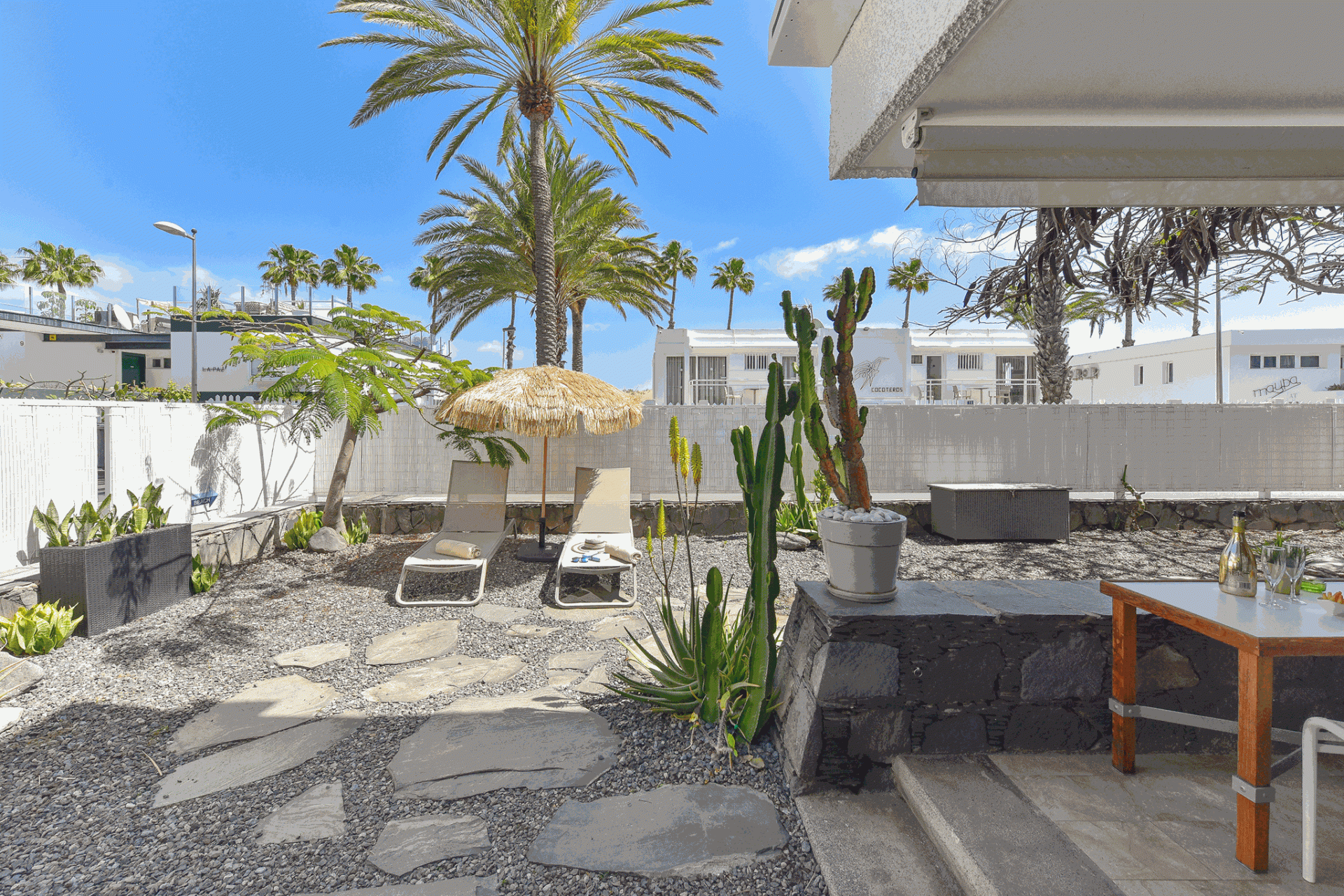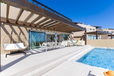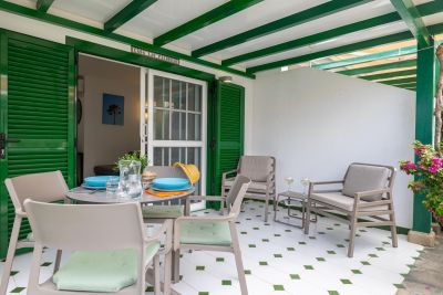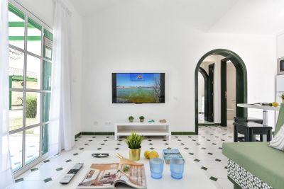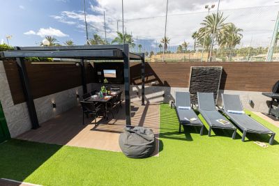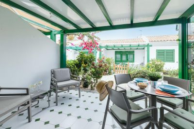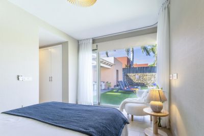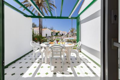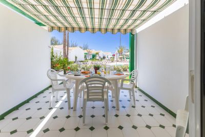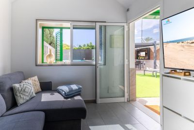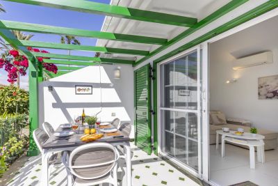Modern 1-bedroom bungalow in Maspalomas with private terrace and shared pool. Perfect for couples seeking comfort and a peaceful stay.