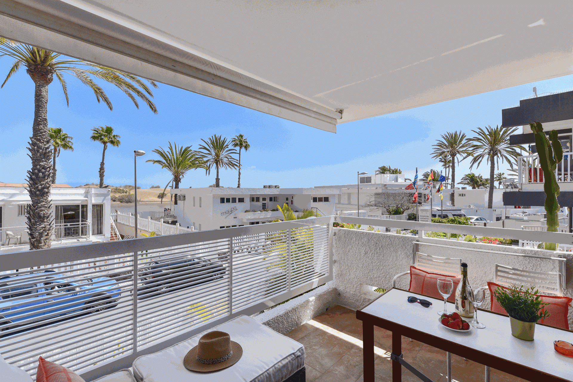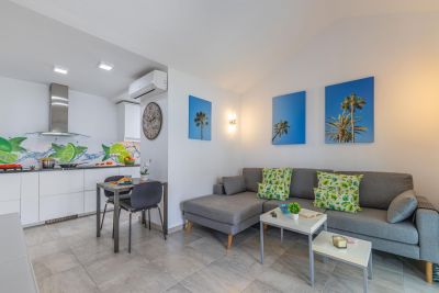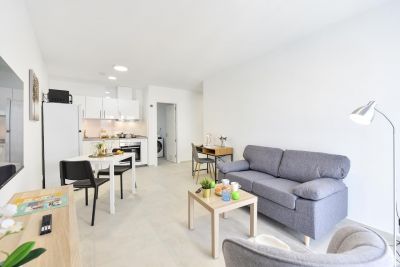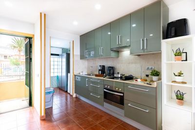 Apartamento familiar en Playa del Inglés con vistas al mar, sofá cama para niños y cocina bien equipada. Gestionado por VillaGranCanaria.