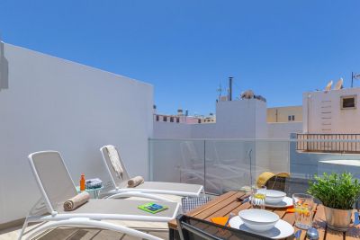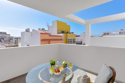 Calma Costera 2A es un moderno apartamento de 3 dormitorios cerca de la playa de Las Canteras, ideal para familias y amigos, con terraza privada y cocina equipada.