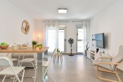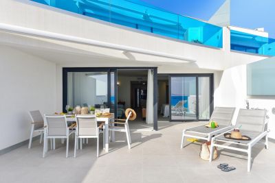 Bienvenidos a Balcon Azul IV, un apartamento de 3 dormitorios, para hasta 5 huéspedes, totalmente reformadado, de obra nueva, moderno, acogedor y con una impresionante terraza en primera línea del mar.