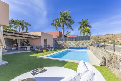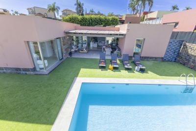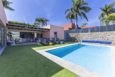 Casa Ferrera es una villa de 3 dormitorios con piscina privada climatizable en Playa del Inglés, Gran Canaria. Cerca de la playa, Yumbo y las Dunas de Maspalomas.