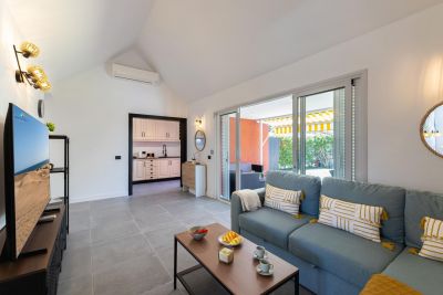 Moderno bungalow de 1 dormitorio en el Campo Internacional de Maspalomas con piscina compartida, terraza privada e interiores renovados. Ideal para parejas. Alojamiento: VillaGranCanaria.