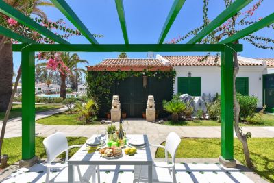 Disfrute de una estancia relajante en Los Albaricoques 12 en Maspalomas, un acogedor bungalow de 3 dormitorios con jardín, terraza y wifi. Alojamiento: VillaGranCanaria.