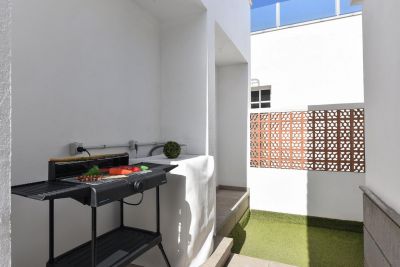 Santa Ana 22 es un dúplex de 2 dormitorios en Playa del Inglés con terraza, piscina comunitaria, aparcamiento y Wi-Fi, a pocos metros de la playa y las Dunas.