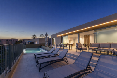 Par 4 Villa 23 es un luminoso alojamiento vacacional de una sola planta situada en el exclusivo complejo Par 4, dentro del Salobre Golf Resort. Diseñada para alojar hasta 6 personas, cuenta con 3 confortables dormitorios, un amplio salón-comedor en piedra natural, cocina totalmente equipada y acceso directo a la terraza y al jardín.