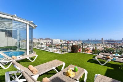 Seaviews Holiday Rental es una magnífica villa de 4 dormitorios situada en la capital y a 1.2 km de la playa de Las Canteras, ideal para familias con niños o grupos.