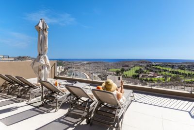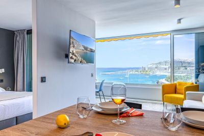Seaside Suite 306 en San Agustín ofrece un luminoso apartamento con balcón y vistas al mar, cerca de la playa, piscina y paseo marítimo.