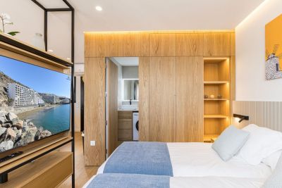 Disfruten en Mar de Luz, Arguineguin: apartamento con 2 camas dobles, vistas al mar, aire acondicionado, piscina y parking privado. Relájate en Gran Canaria.