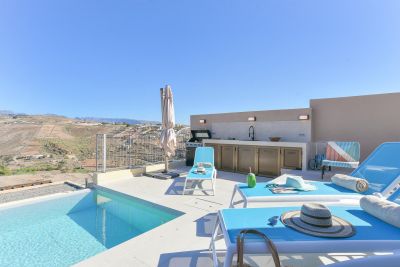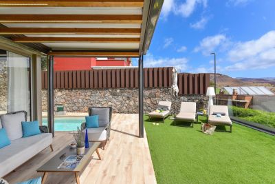 Modern 3-bedroom villa with private pool in Salobre Golf, Gran Canaria. Mountain views, Wi-Fi, parking, pet-friendly. Close to Maspalomas & Meloneras.