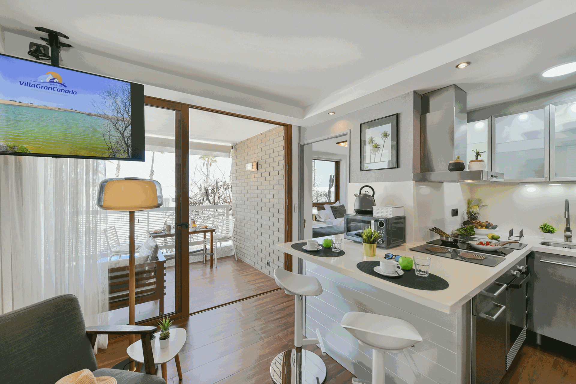 Acogedor estudio frente al mar en Patalavaca con mobiliario moderno, wifi y vistas al mar. Ideal para 2 personas. Anfitrión: VillaGranCanaria.