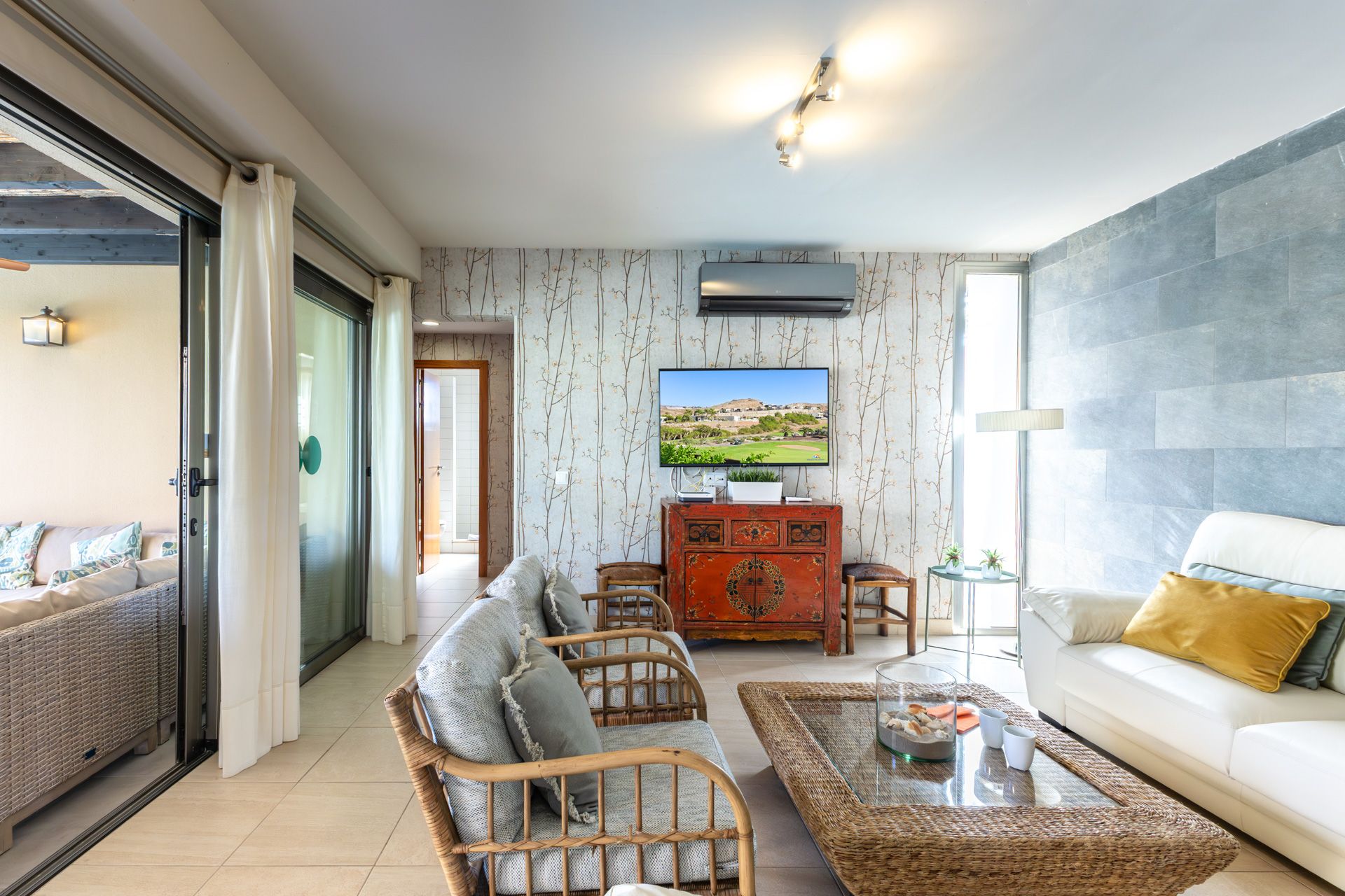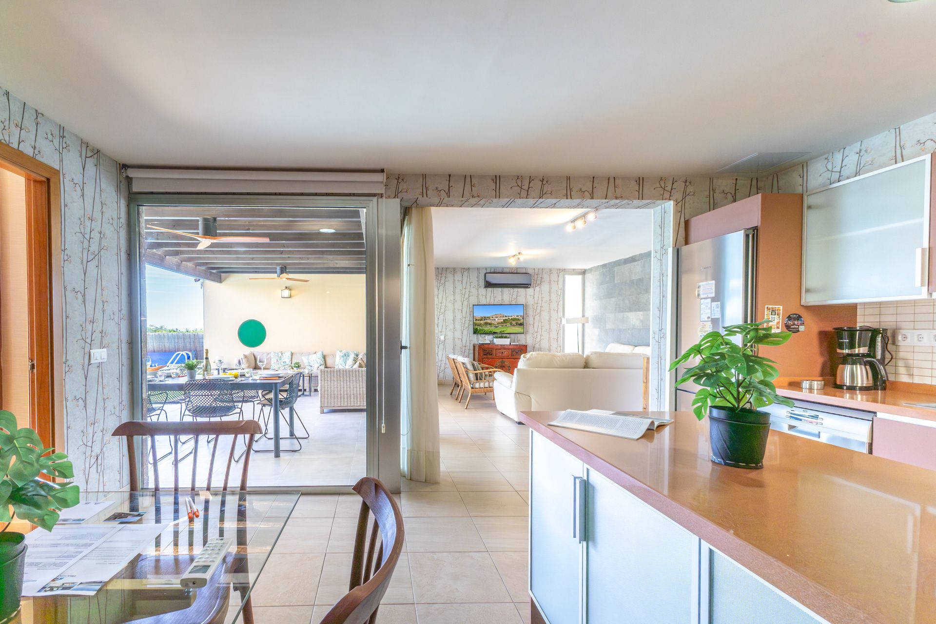 Su diseño moderno y acogedor le hará sentirse como en casa, relájese en su amplia terraza que cuenta con varios ambientes, tumbonas con vistas al jardín y la piscina privada de 8 metros de largo por 4 metros de ancho. Disfrute de una barbacoa de tarde y vea la puesta de sol sobre las montañas.