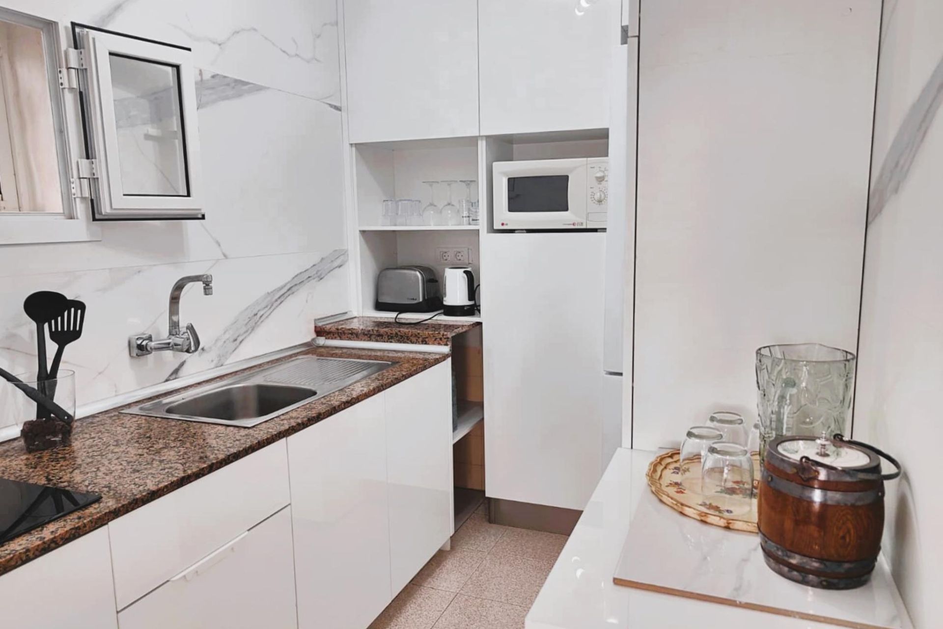 - Cuisine équipée avec plaque vitrocéramique, réfrigérateur, micro-ondes et ustensiles essentiels.