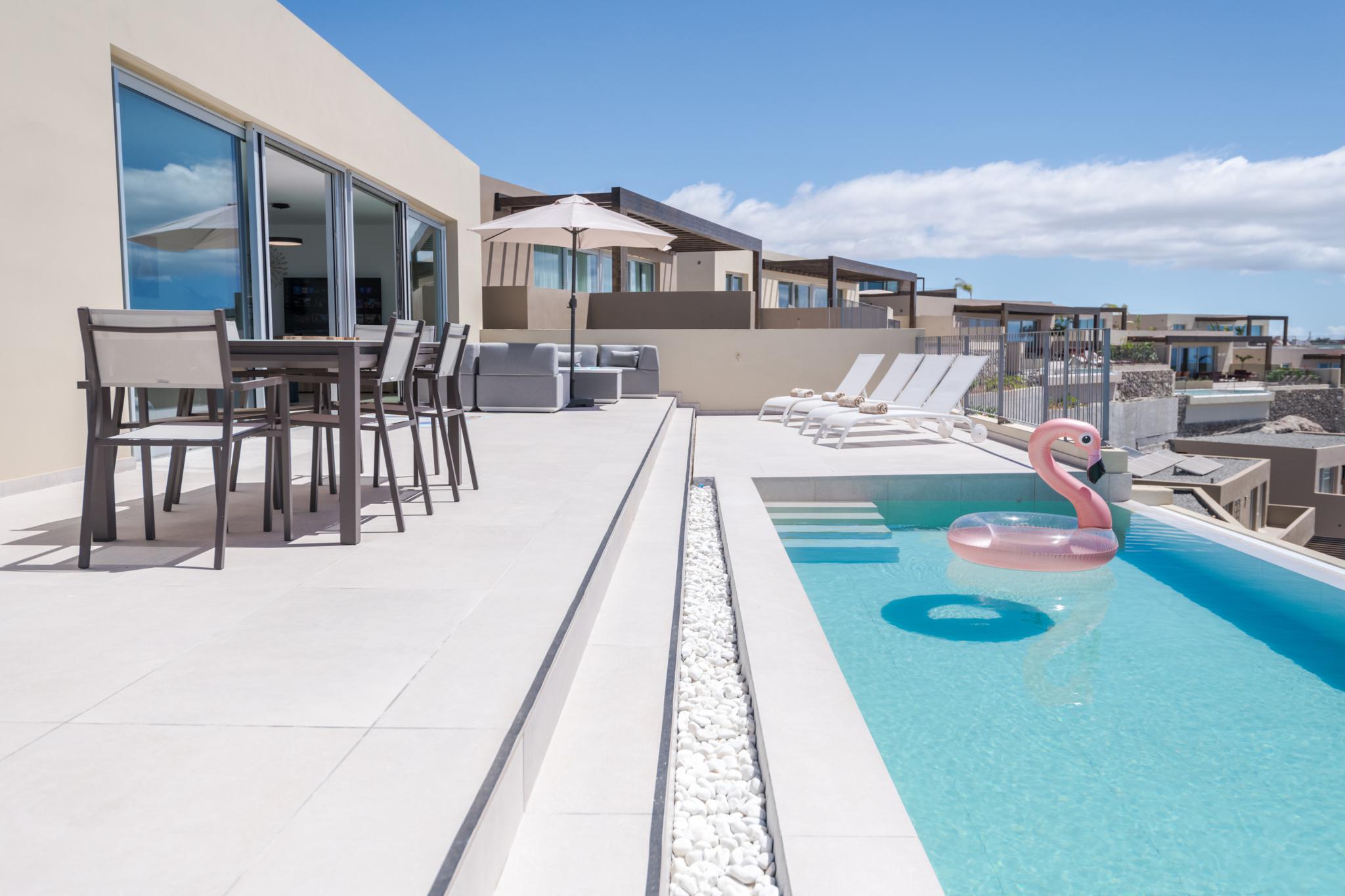 - Piscine privée avec transats.