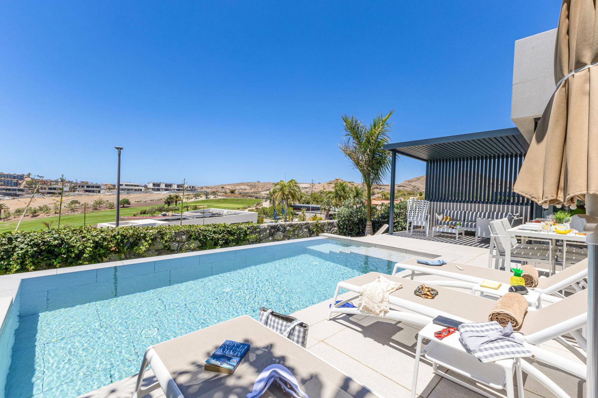 Située au sein du prestigieux Salobre Golf Resort, la propriété bénéficie d’un cadre calme entouré de parcours de golf et de montagnes.