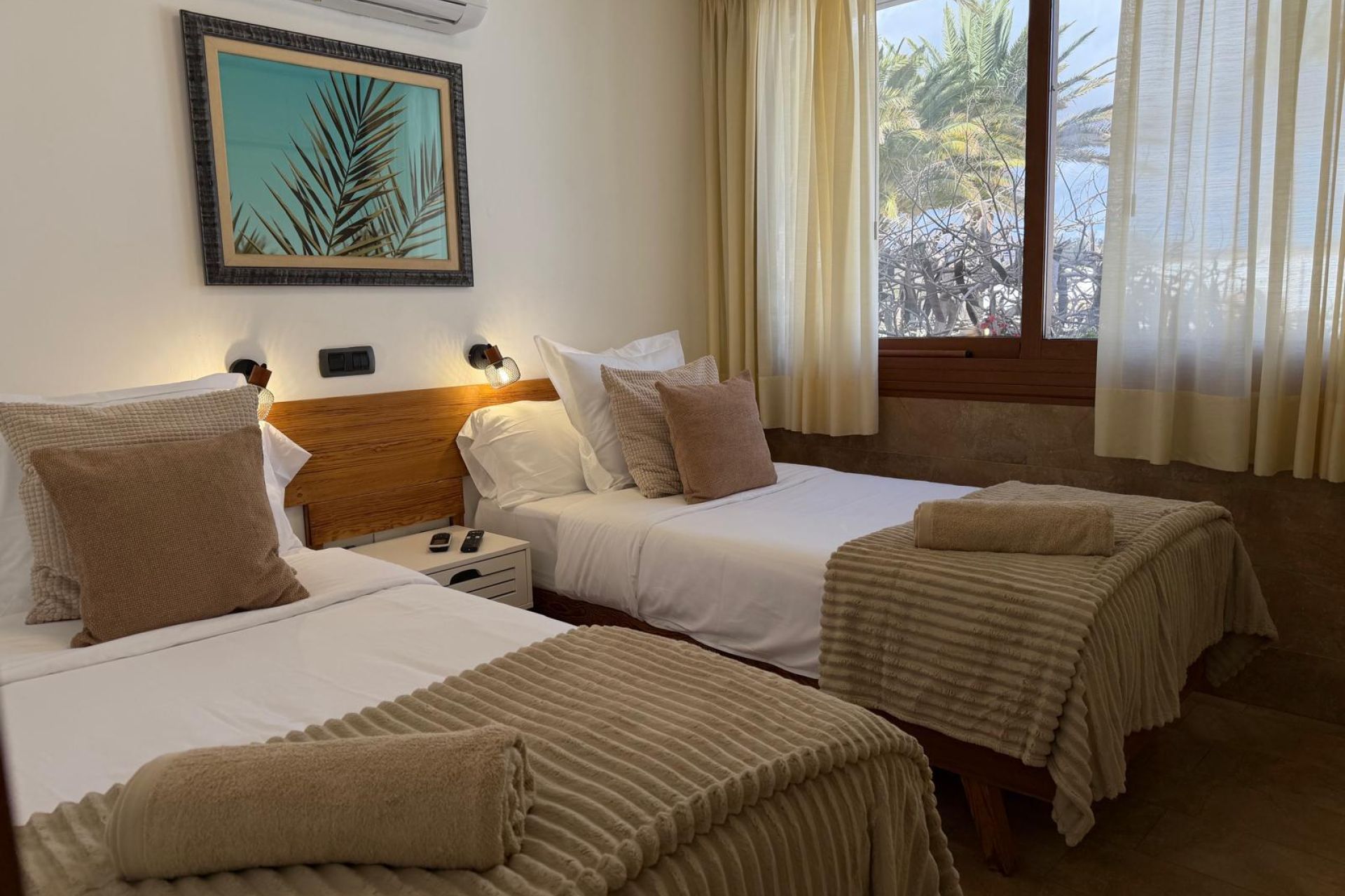 - One bedroom: Two single beds.